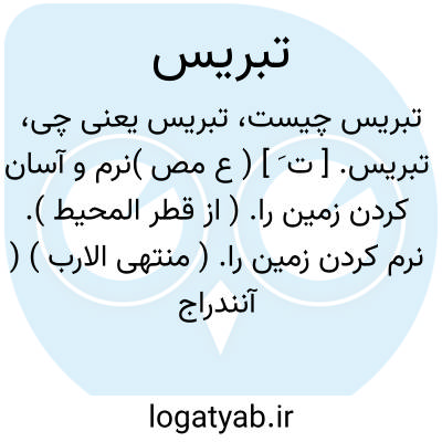 تبریس. [ ت َ ] ( ع مص )نرم و آسان کردن زمین را. ( از قطر المحیط ). نرم کردن زمین را. ( منتهی الارب ) ( آنندراج ) ( ناظم الاطباء ).