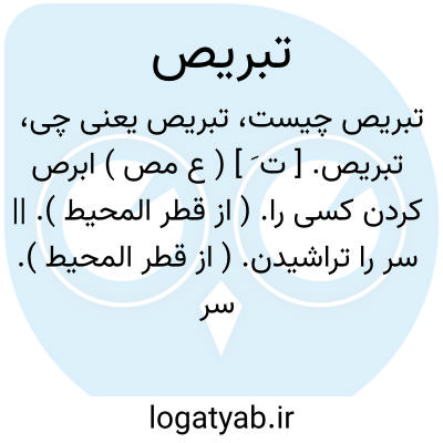 تبریص. [ ت َ ] ( ع مص ) ابرص کردن کسی را. ( از قطر المحیط ). || سر را تراشیدن. ( از قطر المحیط ). سر تراشیدن. ( منتهی الارب ) ( ناظم الاطباء ). || رسیدن باران بزمین پیش از شیار کردن. ( از قطر المحیط ) ( منتهی الارب ) ( ناظم الاطباء ).
