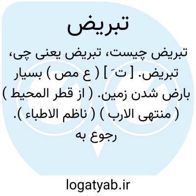 لغت نامه دهخدا تبریض. [ ت َ ] ( ع مص ) بسیار بارض شدن زمین. ( از قطر المحیط ) ( منتهی الارب ) ( ناظم الاطباء ). رجوع به بارض شود.