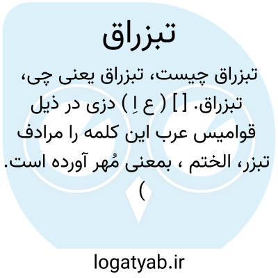 تبزراق. [ ] ( ع اِ ) دزی در ذیل قوامیس عرب این کلمه را مرادف تبزر، الختم، بمعنی مُهر آورده است. ( دزی ج 1 ص 140 ).