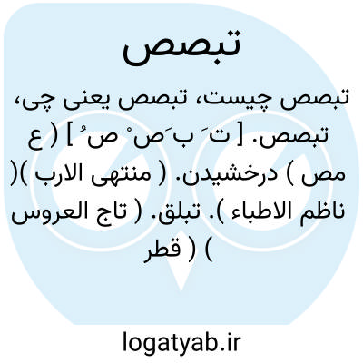 لغت نامه دهخدا تبصص. [ ت َ ب َص ْ ص ُ ] ( ع مص ) درخشیدن. ( منتهی الارب )( ناظم الاطباء ). تبلق. ( تاج العروس ) ( قطر المحیط ).