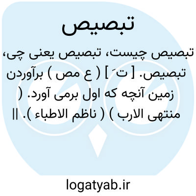 تبصیص. [ ت َ ] ( ع مص ) برآوردن زمین آنچه که اول برمی آورد. ( منتهی الارب ) ( ناظم الاطباء ). || چشم بازکردن سگ بچه. ( تاج المصادر بیهقی ). چشم باز کردن سگ بچه نوزاد. ( منتهی الارب ) ( آنندراج ) ( ناظم الاطباء ).