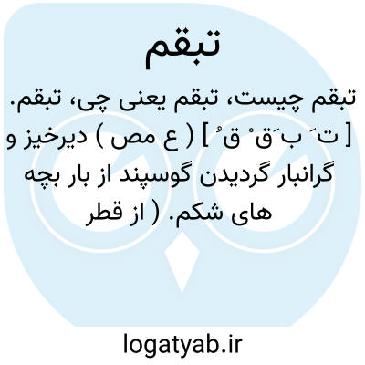 تبقم. [ ت َ ب َق ْ ق ُ ] ( ع مص ) دیرخیز و گرانبار گردیدن گوسپند از بار بچه های شکم. ( از قطر المحیط ) ( منتهی الارب ) ( آنندراج ) ( ناظم الاطباء ).