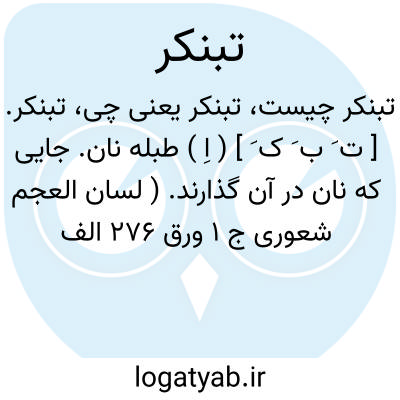 تبنکر. [ ت َ ب َ ک َ ] ( اِ ) طبله نان. جایی که نان در آن گذارند. ( لسان العجم شعوری ج 1 ورق 276 الف ). || طبق چوبی که در آن نان گذارند. ( لسان العجم شعوری ایضاً ).