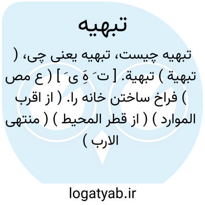 ( تبهیة ) تبهیة. [ ت َ هَِ ی َ ] ( ع مص ) فراخ ساختن خانه را. ( از اقرب الموارد ) ( از قطر المحیط ) ( منتهی الارب ) ( ناظم الاطباء ).
