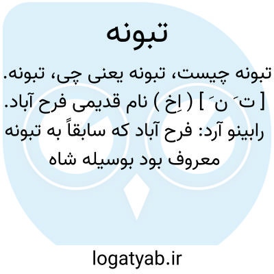 تبونه. [ ت َ ن َ ] ( اِخ ) نام قدیمی فرح آباد. رابینو آرد: فرح آباد که سابقاً به تبونه معروف بود بوسیله شاه عباس در 1020 هَ. ق. / 1611 - 1612 م. ساخته شد. رجوع به سفرنامه مازندران ص 159 انگلیسی و ترجمه آن ص 212 شود.
