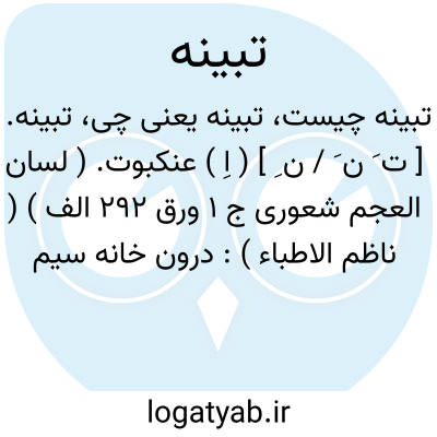 تبینه. [ ت َ ن َ / ن ِ ] ( اِ ) عنکبوت. ( لسان العجم شعوری ج 1 ورق 292 الف ) ( ناظم الاطباء ):