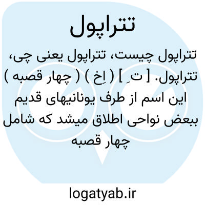 تتراپول. [ ت ِ ] ( اِخ ) ( چهار قصبه ) این اسم از طرف یونانیهای قدیم ببعض نواحی اطلاق میشد که شامل چهار قصبه باشد. مشهورترین آنها محلی بود در سوریه شامل قصبه های آنطاکیه، لاوقیه، افامیه، سلفکیه و در یونان جز اینها بهمین نام نواحی دیگری نیز وجود داشت. ( قاموس الاعلام ترکی ).