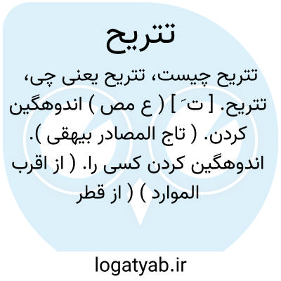 لغت نامه دهخدا تتریح. [ ت َ ] ( ع مص ) اندوهگین کردن. ( تاج المصادر بیهقی ). اندوهگین کردن کسی را. ( از اقرب الموارد ) ( از قطر المحیط ) ( منتهی الارب ) ( آنندراج ) ( ناظم الاطباء ).