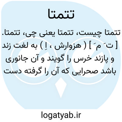 تتمتا. [ ت َ م َ ] ( هزوارش، اِ ) به لغت زند و پازند خرس را گویند و آن جانوری باشد صحرایی که آن را گرفته دست آموز کنند. ( برهان ).