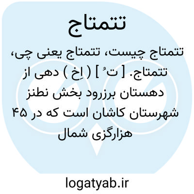 تتمتاج. [ ت ُ ] ( اِخ ) دهی از دهستان برزرود بخش نطنز شهرستان کاشان است که در 45 هزارگزی شمال باختری نطنز و 15 هزارگزی باخترشوسه نطنز به کاشان قرار دارد آب آن از چشمه و نه رشته قنات است محصول آنجا غلات و حبوبات و میوه و شغل اهالی زراعت است و راه مالرو دارد. مزرعه هوی مری جزء این ده میباشد. ( از فرهنگ جغرافیائی ایران ج 3 ).