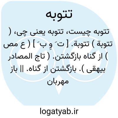 ( تتوبة ) تتوبة. [ ت َ وِ ب َ ] ( ع مص ) از گناه بازگشتن. ( تاج المصادر بیهقی ). بازگشتن از گناه. || باز مهربان شدن خدا بر کسی. توفیق توبه دادن کسی را خدای. || آسان گردانیدن خدای دشواری کسی را. ( منتهی الارب ). رجوع به توبه شود.