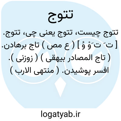 تتوج. [ ت َ ت َوْ وُ ] ( ع مص ) تاج برهادن. ( تاج المصادر بیهقی ) ( زوزنی ). افسر پوشیدن. ( منتهی الارب ) ( از قطر المحیط ) ( ناظم الاطباء ). تاج بر سر نهادن. ( آنندراج ). تاج بر سر گذاشتن. ( ناظم الاطباء ).