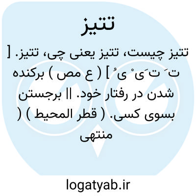 تتیز. [ ت َ ت َی ْ ی ُ ] ( ع مص ) برکنده شدن در رفتار خود. || برجستن بسوی کسی. ( قطر المحیط ) ( منتهی الارب ) ( ناظم الاطباء ).