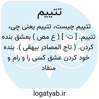 تتییم. [ ت َ ] ( ع مص ) بعشق بنده کردن. ( تاج المصادر بیهقی ). بنده خود کردن عشق کسی را و رام و منقاد گردانیدن او را. ( از منتهی الارب ) ( از قطر المحیط ) ( از ناظم الاطباء ) بعشق بنده گردانیدن و رام و منقاد نمودن. ( آنندراج ).