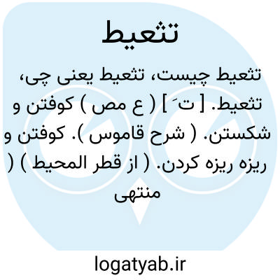 تثعیط. [ ت َ ] ( ع مص ) کوفتن و شکستن. ( شرح قاموس ). کوفتن و ریزه ریزه کردن. ( از قطر المحیط ) ( منتهی الارب ) ( آنندراج ) ( از ذیل اقرب الموارد ).