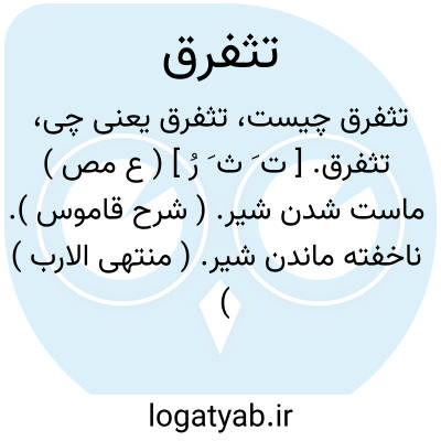 تثفرق. [ ت َ ث َ رُ ] ( ع مص ) ماست شدن شیر. ( شرح قاموس ). ناخفته ماندن شیر. ( منتهی الارب ) ( ناظم الاطباء ). ماست نشدن شیر. ( از قطر المحیط ).