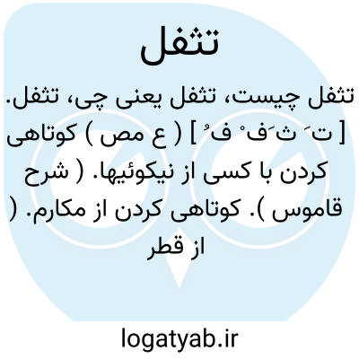 تثفل. [ ت َ ث َف ْ ف ُ ] ( ع مص ) کوتاهی کردن با کسی از نیکوئیها. ( شرح قاموس ). کوتاهی کردن از مکارم. ( از قطر المحیط ) ( از منتهی الارب ) ( ناظم الاطباء ).