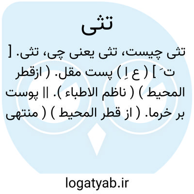 لغت نامه دهخدا تثی. [ ت َ ] ( ع اِ ) پست مقل. ( ازقطر المحیط ) ( ناظم الاطباء ). || پوست بر خرما. ( از قطر المحیط ) ( منتهی الارب ) ( ناظم الاطباء ).