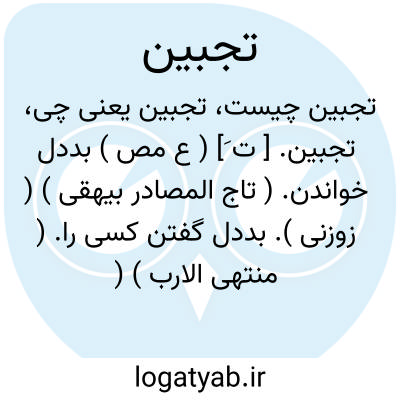 تجبین. [ ت َ] ( ع مص ) بددل خواندن. ( تاج المصادر بیهقی ) ( زوزنی ). بددل گفتن کسی را. ( منتهی الارب ) ( آنندراج ) ( ناظم الاطباء ). || منسوب کردن کسی را به بددلی. ( از اقرب الموارد ) ( از قطر المحیط ) ( از منتهی الارب ) ( از آنندراج ) ( از ناظم الاطباء ). || بددل کردن. ( تاج المصادر بیهقی ) ( زوزنی ). ترسانیدن کسی را. || ترسو یافتن کسی را. ( از قطر المحیط ).