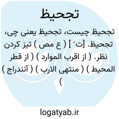 تجحیظ. [ت َ ] ( ع مص ) تیز کردن نظر. ( از اقرب الموارد ) ( از قطر المحیط ) ( منتهی الارب ) ( آنندراج ) ( ناظم الاطباء ).