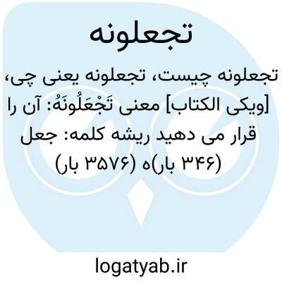 دانشنامه اسلامی [ویکی الکتاب] معنی تَجْعَلُونَهُ: آن را قرار می دهیدریشه کلمه: جعل (۳۴۶ بار)ه (۳۵۷۶ بار)