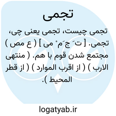 تجمی. [ ت َ ج َم ْ می ] ( ع مص ) مجتمع شدن قوم با هم. ( منتهی الارب ) ( از اقرب الموارد ) ( از قطر المحیط ). مجتمع شدن آن گروه با هم. ( ناظم الاطباء ).