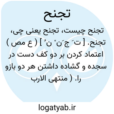 لغت نامه دهخدا تجنح. [ ت َ ج َن ْ ن ُ ] ( ع مص ) اعتماد کردن بر دو کف دست در سجده و گشاده داشتن هر دو بازو را. ( منتهی الارب ) ( ناظم الاطباء ) ( از اقرب الموارد ) ( از قطر المحیط ) ( آنندراج ). اجتناح.