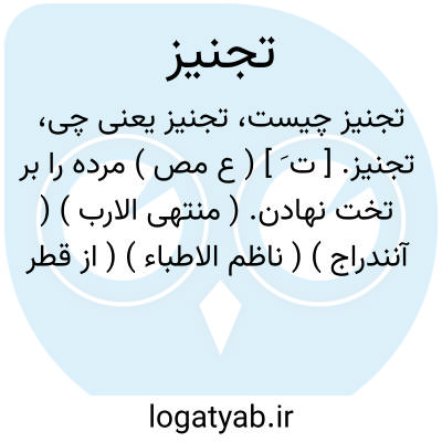 تجنیز. [ ت َ ] ( ع مص ) مرده را بر تخت نهادن. ( منتهی الارب ) ( آنندراج ) ( ناظم الاطباء ) ( از قطر المحیط ) ( از اقرب الموارد ). || نماز گزاردن کاهن مرده را. ( از اقرب الموارد ).