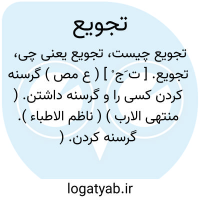 تجویع. [ ت َج ْ ] ( ع مص ) گرسنه کردن کسی را و گرسنه داشتن. ( منتهی الارب ) ( ناظم الاطباء ). گرسنه کردن. ( زوزنی ). گرسنه داشتن. ( دهار ). گرسنه داشتن بقصد. ( آنندراج ) ( از اقرب الموارد ) ( از قطر المحیط ). اِجاعة.