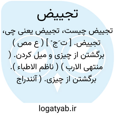 تجییض. [ ت َج ْ ] ( ع مص ) برگشتن از چیزی و میل کردن. ( منتهی الارب ) ( ناظم الاطباء ). برگشتن از چیزی. ( آنندراج ). میل کردن و انحراف وعدول ترس را. ( از اقرب الموارد ) ( از قطر المحیط ).