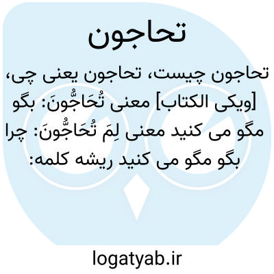 دانشنامه اسلامی [ویکی الکتاب] معنی تُحَاجُّونَ: بگو مگو می کنیدمعنی لِمَ تُحَاجُّونَ: چرا بگو مگو می کنیدریشه کلمه: حجج (۳۳ بار)