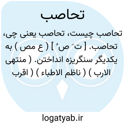 تحاصب. [ ت َ ص ُ ] ( ع مص ) به یکدیگر سنگریزه انداختن. ( منتهی الارب ) ( ناظم الاطباء ) ( اقرب الموارد ) ( قطر المحیط ): و فی فتنة عثمان تحاصبوا فی المسجد حتی مااُبصر ادیم السماء. ( اقرب الموارد ).