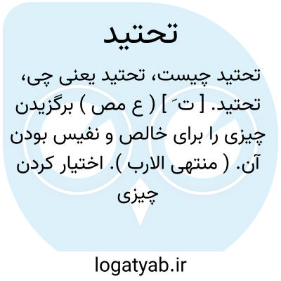 لغت نامه دهخدا تحتید. [ ت َ ] ( ع مص ) برگزیدن چیزی را برای خالص و نفیس بودن آن. ( منتهی الارب ). اختیار کردن چیزی برای خلوص و برتری آن. ( از اقرب الموارد ) ( از قطر المحیط ).