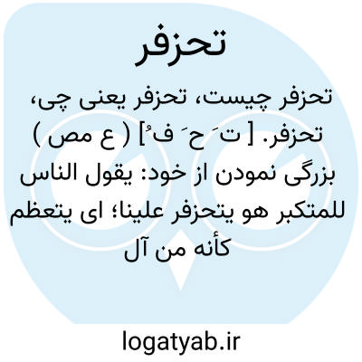 تحزفر. [ ت َ ح َ ف ُ] ( ع مص ) بزرگی نمودن از خود: یقول الناس للمتکبر هو یتحزفر علینا؛ ای یتعظم کأنه من آل ذی حزفر. || گردنکشی کردن. ( منتهی الارب ) ( ناظم الاطباء ).