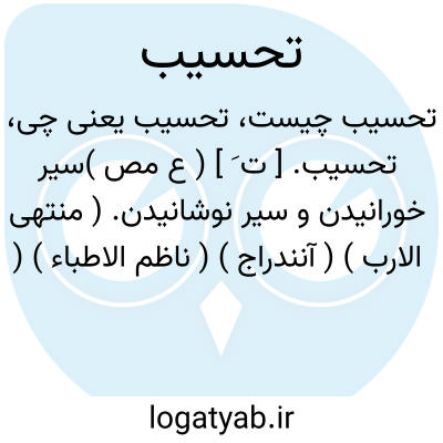 تحسیب. [ ت َ ] ( ع مص )سیر خورانیدن و سیر نوشانیدن. ( منتهی الارب ) ( آنندراج ) ( ناظم الاطباء ) ( اقرب الموارد ) ( قطر المحیط ). || کسی را چندان عطا دادن تا خوشنود شود. ( تاج المصادر بیهقی ). دادن آنچه شخص بدان خوشنود شود. ( منتهی الارب ) ( ناظم الاطباء ). دادن کسی را چیزی که بدان خوشنود شود. ( آنندراج ). || چیزی را بالش کردن. ( تاج المصادر بیهقی ) ( منتهی الارب ) ( آنندراج ) ( ناظم الاطباء ). توسد. ( اقرب الموارد ) ( قطر المحیط ). || بر بالش نشاندن. ( تاج المصادر بیهقی ). بر بالش نشانیدن کسی را. ( منتهی الارب ) ( آنندراج ) ( ناظم الاطباء ). || مرده را در کفن پیچیده در گور کردن، یا دفن کردن در سنگستان. ( منتهی الارب ) ( آنندراج ) ( ناظم الاطباء ). دفن کردن میت را در سنگ یا دفن کردن او را با کفن. ( اقرب الموارد ) ( قطر المحیط ).