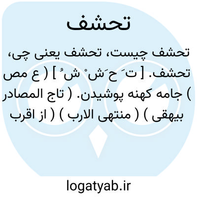 لغت نامه دهخدا تحشف. [ ت َ ح َش ْ ش ُ ] ( ع مص ) جامه کهنه پوشیدن. ( تاج المصادر بیهقی ) ( منتهی الارب ) ( از اقرب الموارد ) ( از قطر المحیط ). || افتادن و پریدن پشمهای شتر. ( اقرب الموارد ). تحسف. || خشک و ترنجیده شدن گوش و پستان. ( قطر المحیط ).