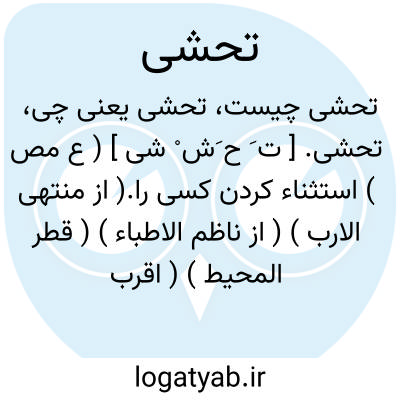 تحشی. [ ت َ ح َش ْ شی ] ( ع مص ) استثناء کردن کسی را.( از منتهی الارب ) ( از ناظم الاطباء ) ( قطر المحیط ) ( اقرب الموارد ). گفتن حاشا فلان. ( شرح قاموس ) ( از منتهی الارب ) ( از ناظم الاطباء ) ( قطر المحیط ). || ننگ داشتن از کسی. ( شرح قاموس ) ( از منتهی الارب ) ( از ناظم الاطباء ). تذمم. ( اقرب الموارد ) ( قطر المحیط ).