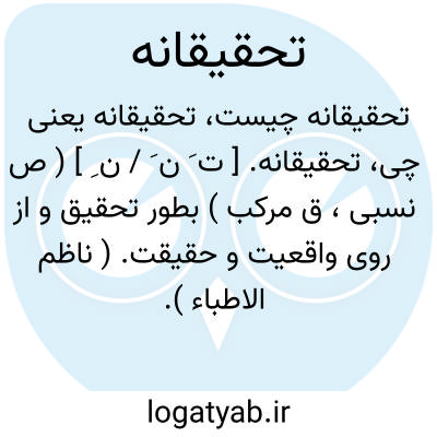 تحقیقانه. [ ت َ ن َ / ن ِ ] ( ص نسبی، ق مرکب ) بطور تحقیق و از روی واقعیت و حقیقت. ( ناظم الاطباء ).