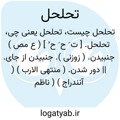 تحلحل. [ ت َ ح َ ح ُ ] ( ع مص ) جنبیدن. ( زوزنی ). جنبیدن از جای. || دور شدن. ( منتهی الارب ) ( آنندراج ) ( ناظم الاطباء ) ( اقرب الموارد ). || رفتن. || اقامت کردن و نجنبیدن. ( اقرب الموارد ).