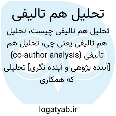 {co-author analysis} [آینده پژوهی و آینده نگری] تحلیلی که همکاری میان مؤلفان یک مقاله را باتوجه به ویژگی های اجتماعی و تعاملات میان رشته های مختلف بررسی می کند