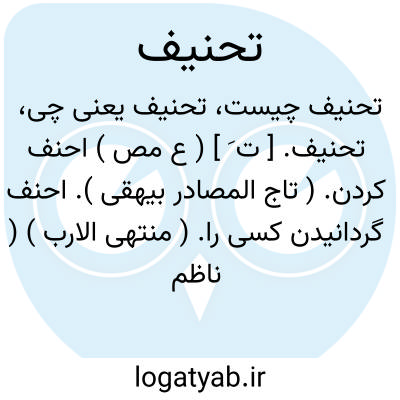 تحنیف. [ ت َ ] ( ع مص ) احنف کردن. ( تاج المصادر بیهقی ). احنف گردانیدن کسی را. ( منتهی الارب ) ( ناظم الاطباء ) ( اقرب الموارد ) ( قطر المحیط ). رجوع به احنف شود.