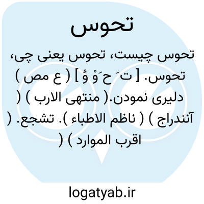 تحوس. [ ت َ ح َوْ وُ ] ( ع مص ) دلیری نمودن.( منتهی الارب ) ( آنندراج ) ( ناظم الاطباء ). تشجع. ( اقرب الموارد ) ( قطر المحیط ): فجعل رجل منهم یتحوس فی کلامه؛ ای یتشجع. ( اقرب الموارد ). || اقامت کردن به جایی بعزیمت سفر. ( منتهی الارب ) ( آنندراج ) ( ناظم الاطباء ) ( اقرب الموارد ) ( قطر المحیط ). چنانکه گویی اراده سفر دارد ولی اشتغالات متواتر او را از این کار بازدارد: سِرْ قد انی ̍ لک ایها المتحوس. ( از اقرب الموارد ). || اندوهگین شدن. ( منتهی الارب )( ناظم الاطباء ). || تحوس در کلام؛ آماده شدن برای آن. ( اقرب الموارد ). || نالیدن برای چیزی. ( منتهی الارب ) ( ناظم الاطباء ) ( قطر المحیط ).