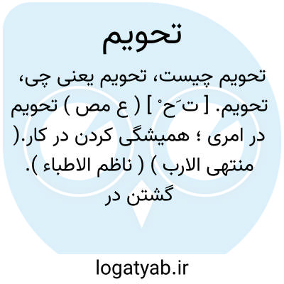 تحویم. [ ت َح ْ ] ( ع مص ) تحویم در امری؛ همیشگی کردن در کار.( منتهی الارب ) ( ناظم الاطباء ). گشتن در اطراف کاری و مداومت در آن. ( از اقرب الموارد ) ( از قطر المحیط ).