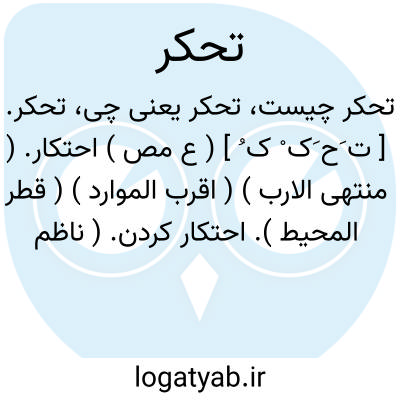 تحکر. [ ت َح َک ْ ک ُ ] ( ع مص ) احتکار. ( منتهی الارب ) ( اقرب الموارد ) ( قطر المحیط ). احتکار کردن. ( ناظم الاطباء ). نگاه داشتن غله برای فروختن و گرانی. ( از منتهی الارب ) ( از اقرب الموارد ) ( از قطر المحیط ). || افسوس خوردن. ( منتهی الارب ) ( ناظم الاطباء ) ( اقرب الموارد )( قطر المحیط ): و انه لیتحکّر عَلیه ِ؛ ای یتحسر. قال رؤبة: و ان لوی لحییه ِ بالتحکر. ( اقرب الموارد ).