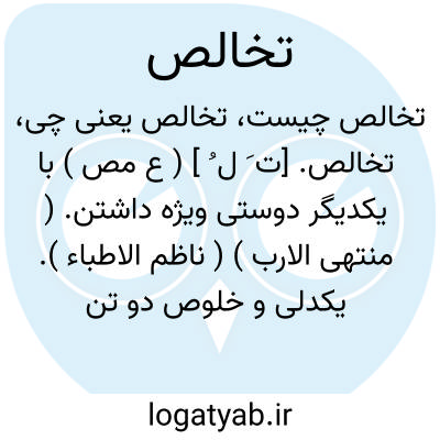 لغت نامه دهخدا تخالص. [ت َ ل ُ ] ( ع مص ) با یکدیگر دوستی ویژه داشتن. ( منتهی الارب ) ( ناظم الاطباء ). یکدلی و خلوص دو تن با یکدیگر. ( از اقرب الموارد ) ( از قطر المحیط ) ( از المنجد ).