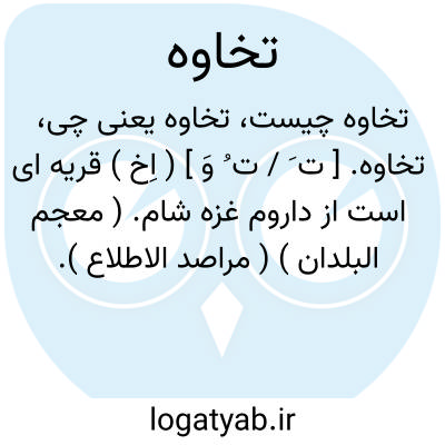 تخاوه. [ ت َ / ت ُ وَ ] ( اِخ ) قریه ای است از داروم غزه شام. ( معجم البلدان ) ( مراصد الاطلاع ).
