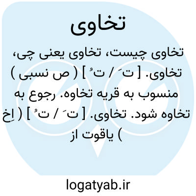 تخاوی. [ ت َ / ت ُ ] ( ص نسبی ) منسوب به قریه تخاوه. رجوع به تخاوه شود.