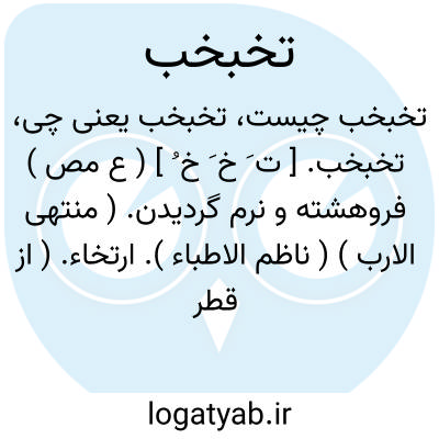 تخبخب. [ ت َ خ َ خ ُ ] ( ع مص ) فروهشته و نرم گردیدن. ( منتهی الارب ) ( ناظم الاطباء ). ارتخاء. ( از قطر المحیط )( از اقرب الموارد ). || لاغر شدن بدن بعد فربهی. || فرونشستن سختی گرما. ( منتهی الارب ) ( ناظم الاطباء ) ( از اقرب الموارد ) ( از قطر المحیط ).فرونشستن مقداری از سختی گرما. ( نشوءُاللغة ص 14 ).