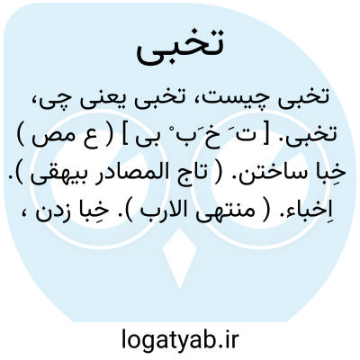 تخبی. [ ت َ خ َب ْ بی ] ( ع مص ) خِبا ساختن. ( تاج المصادر بیهقی ). اِخباء. ( منتهی الارب ). خِبا زدن، و خِباء، خرگاه را گویند. ( آنندراج ). خِبا ساختن و خِبا افراختن. ( منتهی الارب ) ( ناظم الاطباء ) ( از اقرب الموارد ) ( از قطر المحیط ).